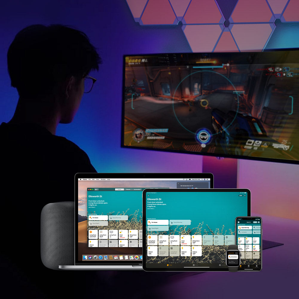 Control your Cololight products with Apple HomeKit using voice commands or the Home app on your Apple devices. Siri enables you to turn on/off Cololight, adjust brightness, and change colors to match your gaming setup. Create custom scenes for different game types.