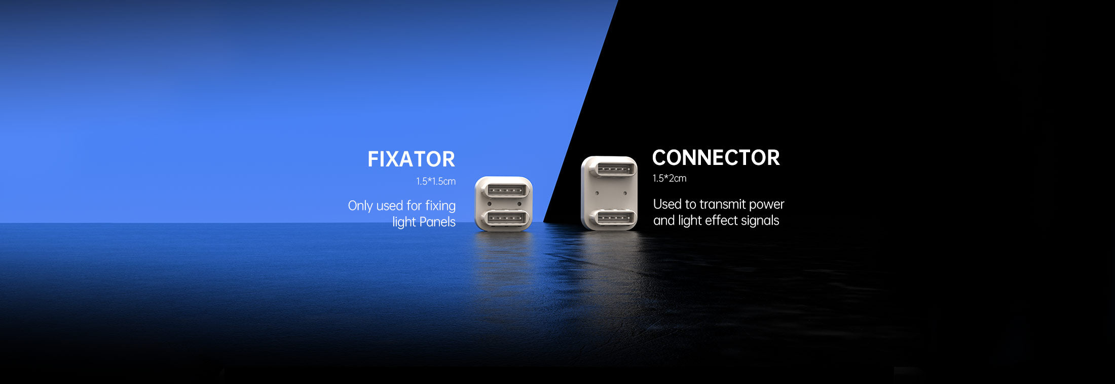 To use the fixator, connect both ends to a single-pin-hole socket. The fixator is primarily used to fix the light panels, and it will not have any impact on the lighting.
